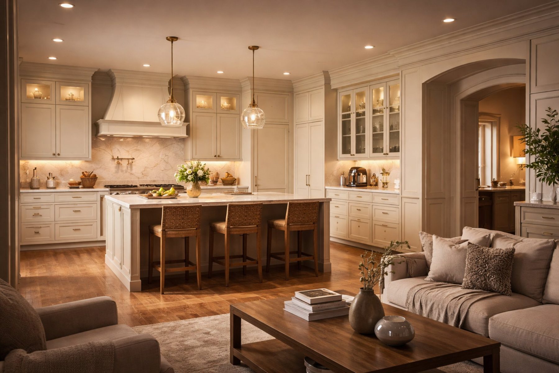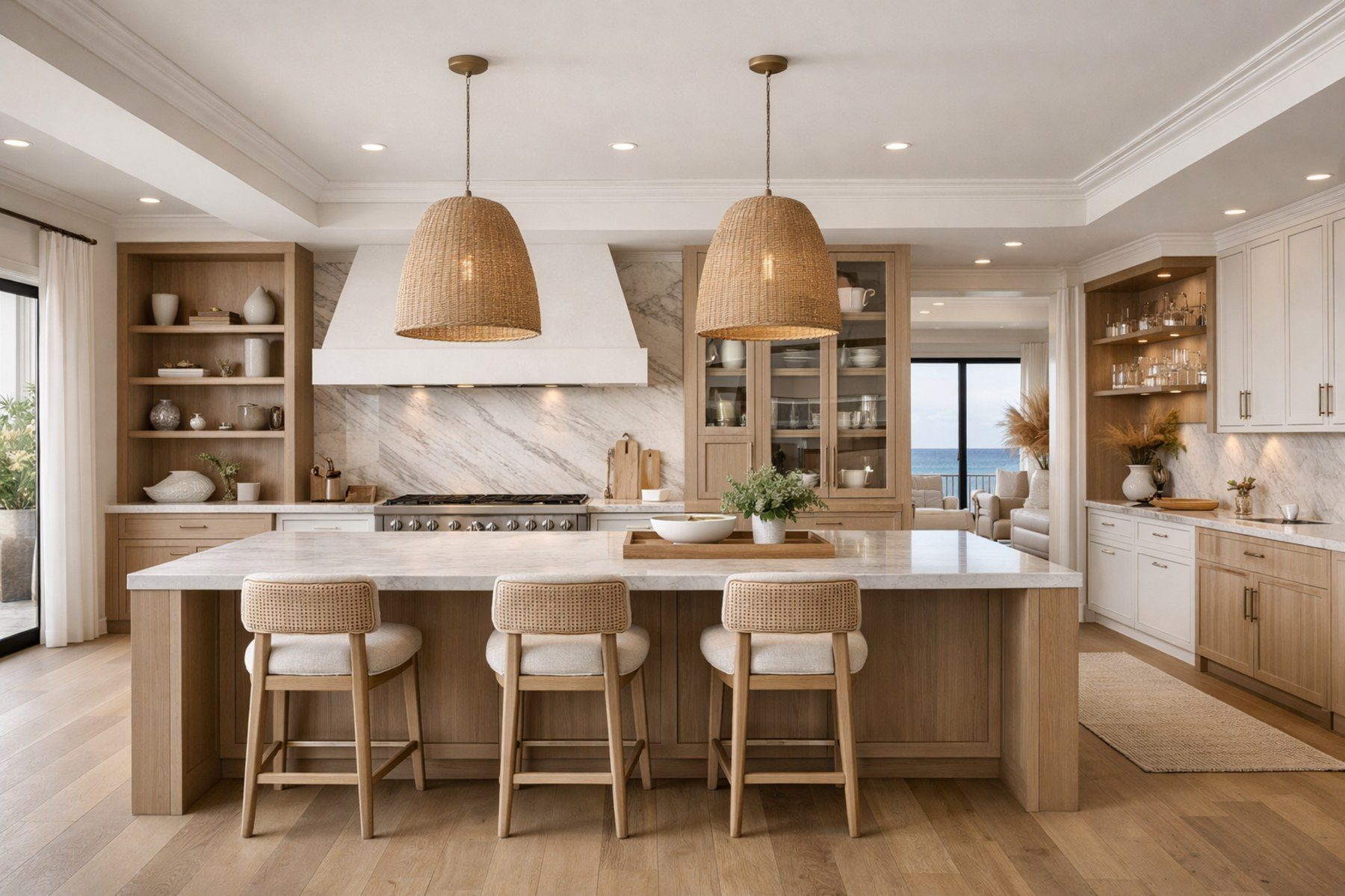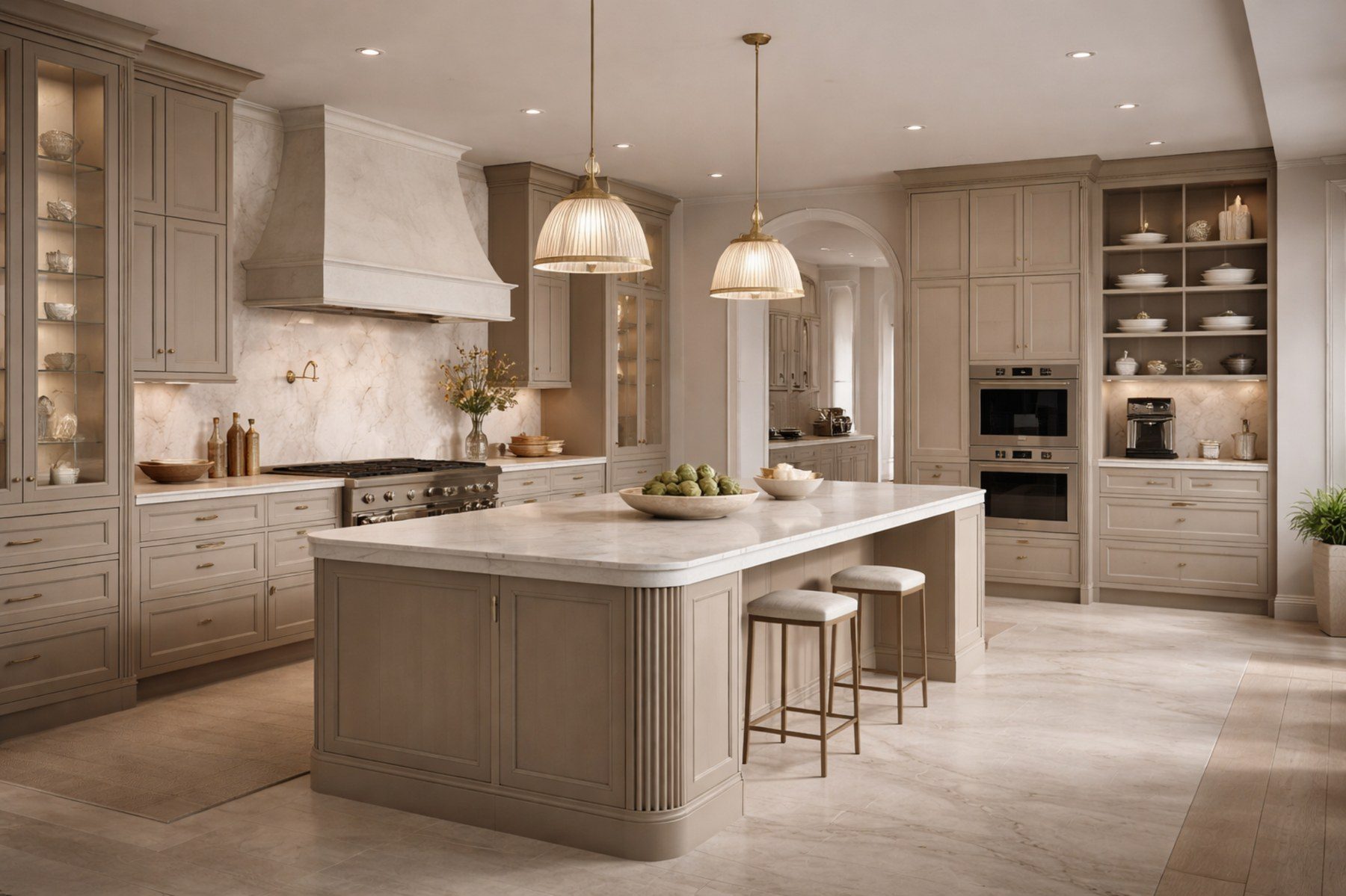 Flagship kitchens planned through layout judgment, cabinetry discipline, and finish cohesion.