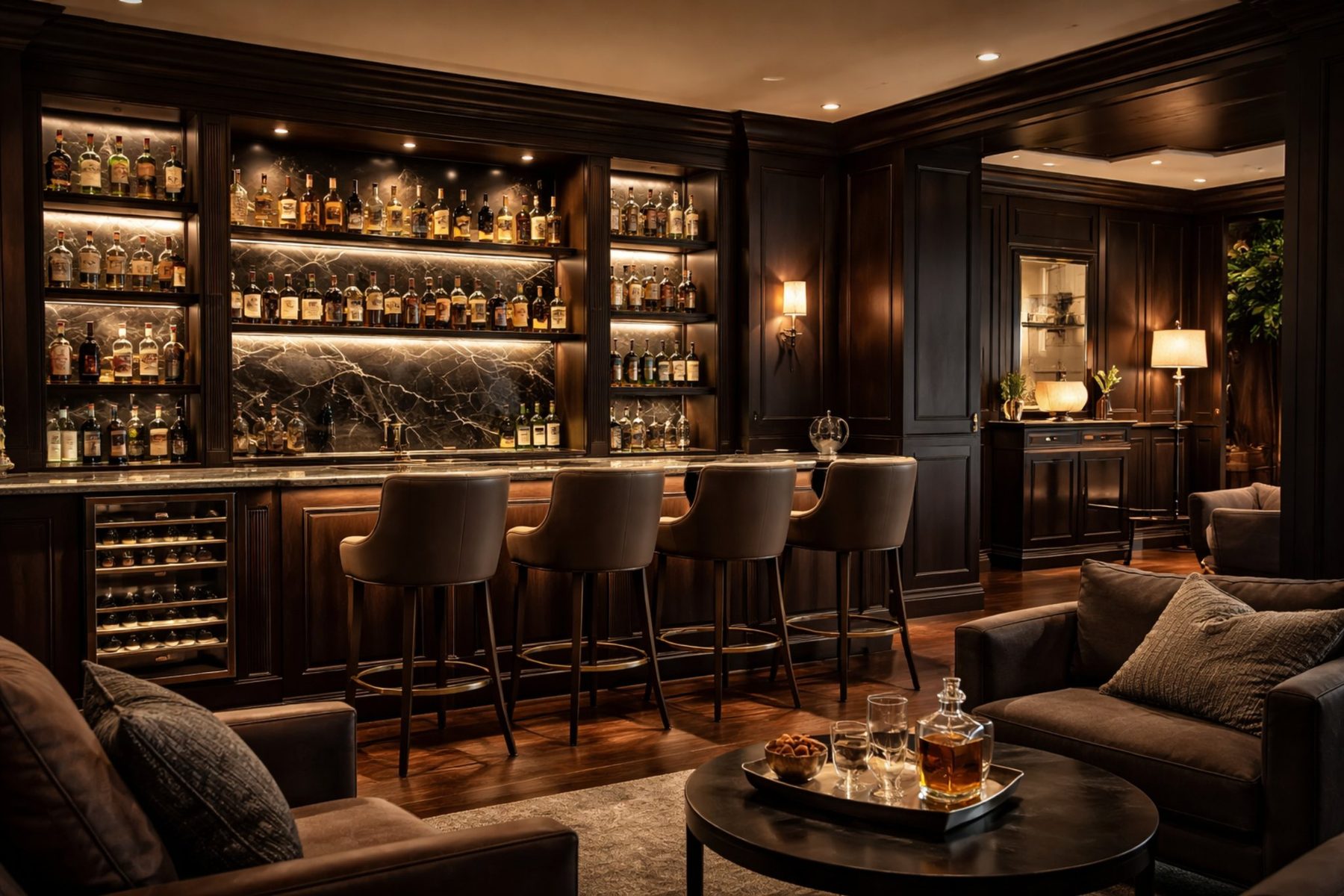 Entertaining and beverage spaces with personality, polish, and purposeful storage.