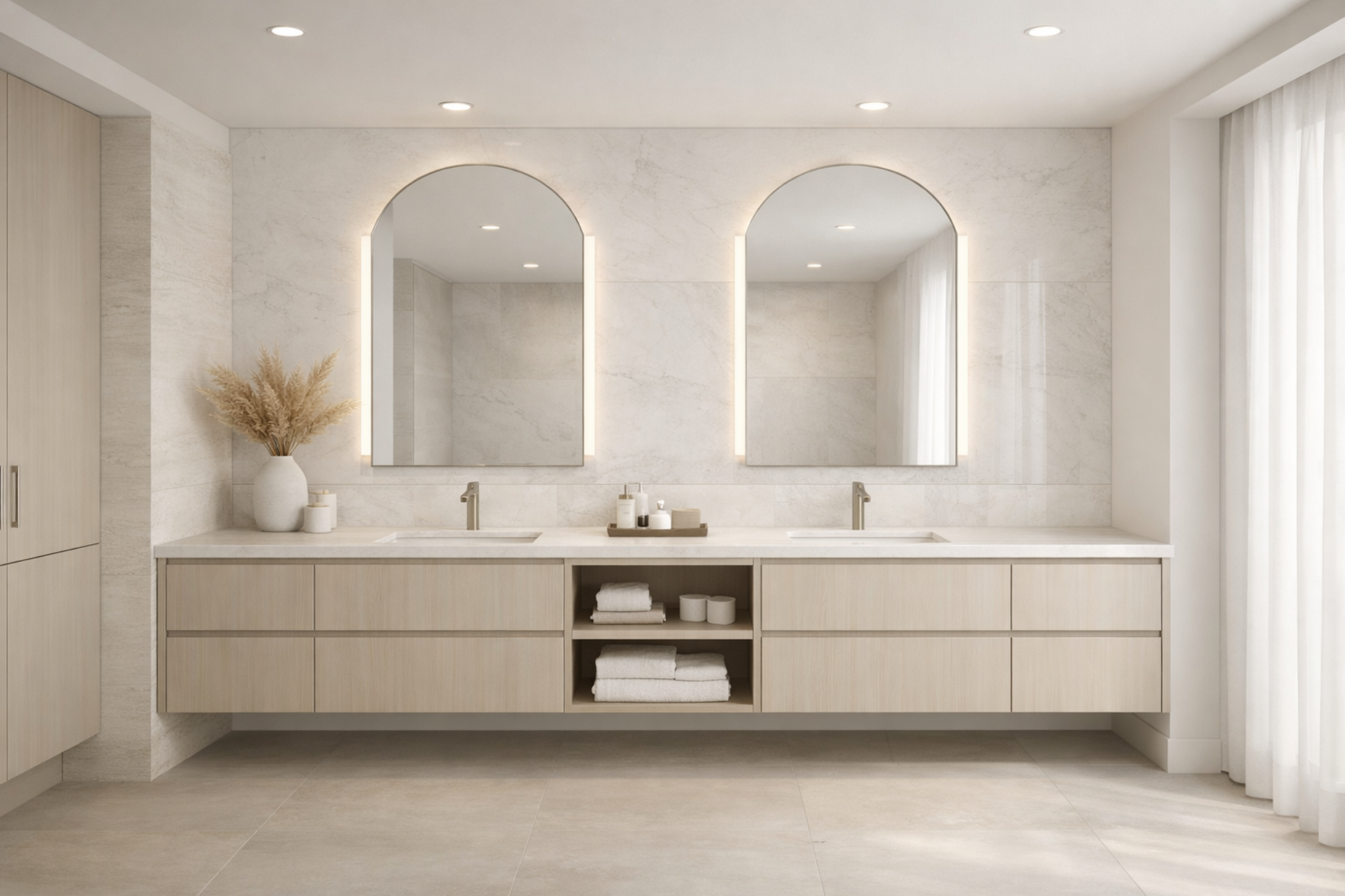 Yes. The goal is not just a cabinet layout. It is a more resolved vanity environment with stronger material and design cohesion.